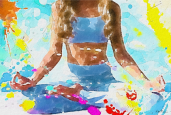 Tento obraz, s názvem SÍLA ZEVNITŘ, zachycuje okamžik, kdy se v těle neprojevuje jen fyzická síla, ale i hluboké propojení sama se sebou. Barvy symbolizují PŘIJETÍ a ODVAHU - hlavní atributy opravdové SVOBODY.